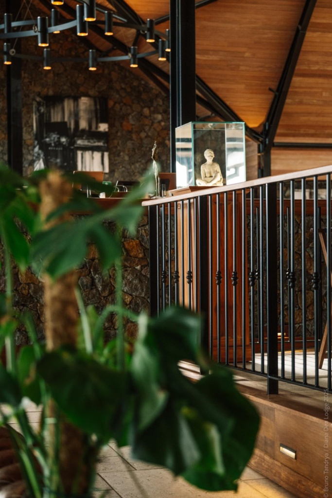 Inspiré des Lodges d’Afrique du Sud, le design du Diana Dea Lodge est principalement composé d’éléments de bois et de pierres.
